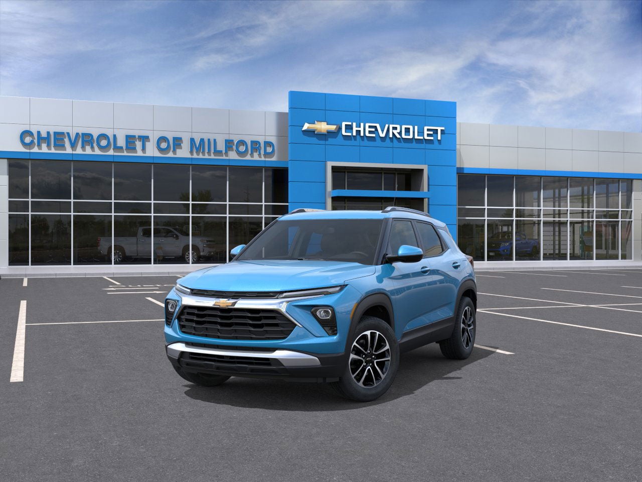 Chevrolet of MIlford is proud to offer this attractive 2026 Chevrolet TrailBlazer a positively terrific-looking SUV with the following Features: Convenience Package (1 Type-An and 1 Type-C USB Charging-Only Ports, 120-Volt Power Outlet, 2-Way Power Driver Lumbar Seat Adjuster, 8-Way Power Driver Seat Adjuster, Cabin Humidity Sensor, Driver and Front Passenger Illuminated Vanity Mirrors, Inside Rear-View Auto-Dimming Mirror, Power Liftgate, Rear Center Armrest, Single-Zone Automatic Climate Control, and Wireless Charging), Driver Confidence Package (Lane Change Alert with Side Blind Zone Alert, Rear Cross Traffic Alert, and Rear Park Assist), LT Cold Weather Package (Heated Driver and Front Passenger Seats, Heated Steering Wheel, Satin Silver and Chrome Wrapped Shift Knob, and Wrapped Steering Wheel), Preferred Equipment Group 1LT, 1 Type-An and 1 Type-C USB Ports, 3.17 Final Drive Axle Ratio, 4-Way Manual Front Passenger Seat Adjuster, 4-Wheel Disc Brakes, 6 Speakers, 6-Speaker Audio System Feature with Amplifier, 6-Way Manual Driver Seat Adjuster, ABS brakes, Air Conditioning, Alloy wheels, AM/FM radio: SiriusXM, Auto High-beam Headlights, Brake assist, Bumpers: body-color, Cloth Seat Trim, Compass, Delay-off headlights, Driver door bin, Driver vanity mirror, Dual front impact airbags, Dual front side impact airbags, Dual-Pane Panoramic Power Sunroof, Electronic Stability Control, Emergency communication system: OnStar and Chevrolet connected services capable, Exterior Parking Camera Rear, Flat-Folding Front Passenger Seatback, Front anti-roll bar, Front Bucket Seats, Front Center Armrest, Front License Plate Bracket, Front reading lights, Front wheel independent suspension, Fully automatic headlights, Heated door mirrors, High Gloss Black Body-Color Mirror Caps, High Gloss Black Roof-Mounted Side Rails, Illuminated entry, Knee airbag, Low tire pressure warning, Occupant sensing airbag, Overhead airbag, Overhead console, Panic alarm, Passenger door bin, Passenger vanity mirror, Power door mirrors, Power steering, Power windows, Radio data system, Radio: AM/FM Stereo Audio System, Rear side impact airbag, Rear window defroster, Rear window wiper, Remote keyless entry, Ride and Handling Suspension, Security system, SiriusXM Trial Subscription, Speed control, Split folding rear seat, Spoiler, Steering wheel mounted audio controls, Tachometer, Telescoping steering wheel, Tilt steering wheel, Traction control, Trip computer, Variably intermittent wipers, Wheels: 17 High Gloss Black Machined Aluminum, and Wireless Apple CarPlay/Android Auto.