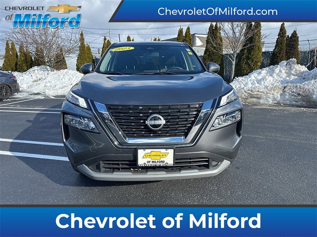 Chevrolet of MIlford is proud to offer this terrific 2023 Nissan Rogue a positively stunning SUV with the following Features: AWD, 18 Aluminum Alloy Wheels, 4-Wheel Disc Brakes, 5.604 Axle Ratio, 6 Speakers, ABS brakes, Air Conditioning, Alloy wheels, AM/FM Radio, AM/FM radio: SiriusXM, Auto High-beam Headlights, Automatic temperature control, Black Splash Guards (Set of 4), Brake assist, Bumpers: body-color, Chrome Rear Bumper Protector, Cloth Seat Trim, Delay-off headlights, Driver door bin, Driver vanity mirror, Dual front impact airbags, Dual front side impact airbags, Electronic Stability Control, Emergency communication system: NissanConnect Services, First Aid Kit, Floor Mats w/1-Piece Cargo Area Protector, Four wheel independent suspension, Front anti-roll bar, Front Bucket Seats, Front Center Armrest, Front dual zone A/C, Front reading lights, Fully automatic headlights, Heated door mirrors, Illuminated entry, Knee airbag, Low tire pressure warning, NissanConnect featuring Apple CarPlay and Android Auto, Occupant sensing airbag, Outside temperature display, Overhead airbag, Overhead console, Panic alarm, Passenger door bin, Passenger vanity mirror, Power door mirrors, Power driver seat, Power steering, Power windows, Radio data system, Rear anti-roll bar, Rear Parking Sensors, Rear seat center armrest, Rear side impact airbag, Rear window defroster, Rear window wiper, Remote keyless entry, Speed control, Speed-Sensitive Wipers, Split folding rear seat, Spoiler, Steering wheel mounted audio controls, Tachometer, Telescoping steering wheel, Tilt steering wheel, Traction control, Trip computer, and Variably intermittent wipers.